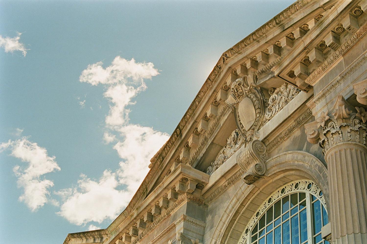 Detail shot of Michigan Central Station exterior